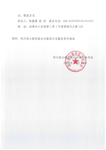 “四川省小额贷款公司最佳行业服务奖”评选通知
